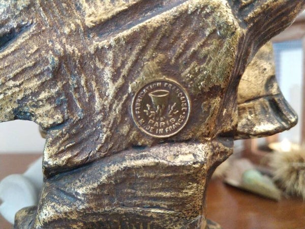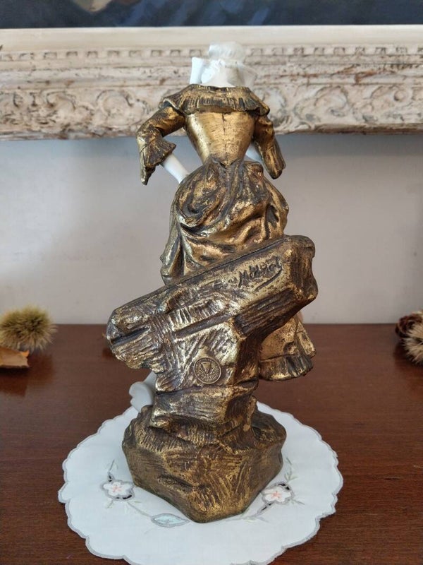 Paire de statue signées MEDNOT, Art Nouveau 1900, cachet du fabricant au dos
