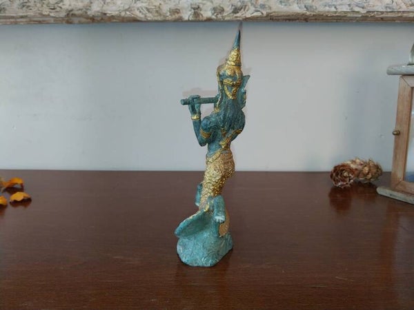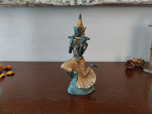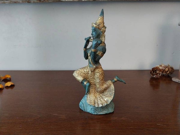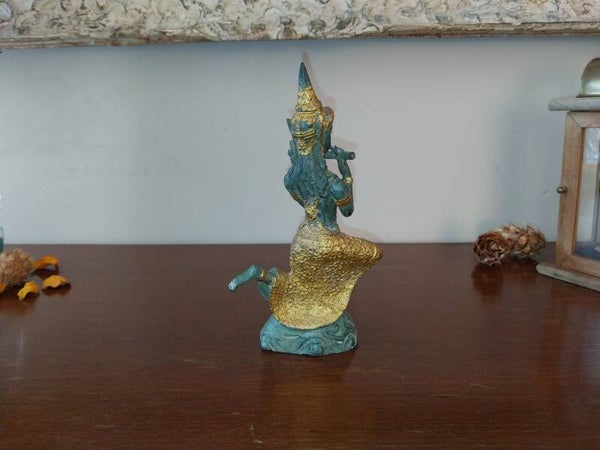 Statue en bronze véritable représentant une déesse Thaïlandaise jouant de la flûte