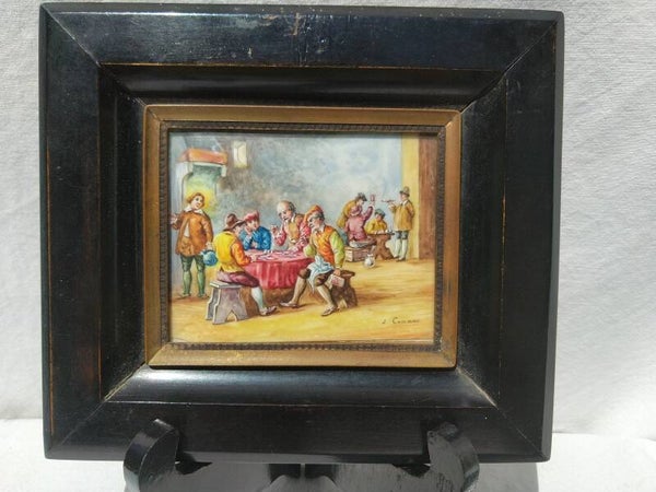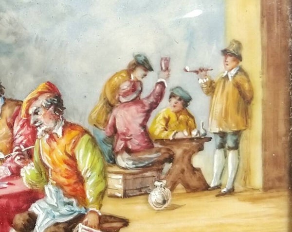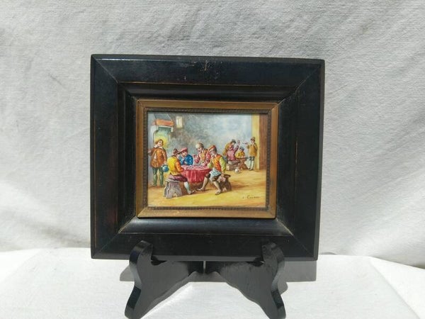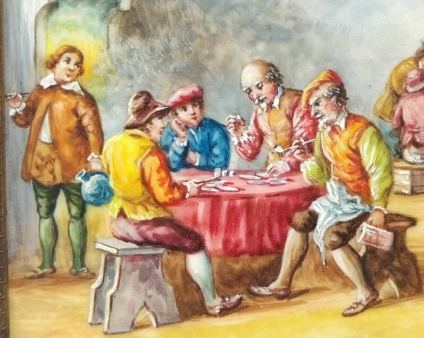 Les Joueurs de cartes ! Qualité exceptionnelle pour cette rare peinture miniature dans le goût du 17éme siècle, peinte à la main sur papier au 19éme siècle. Agrandissez les photos et admirez la finesse des détails, les expressions des visages, tout l'art d'un grand peintre dans un tout petit tableau, une vraie prouesse technique ! Authentique oeuvre d'art signée.