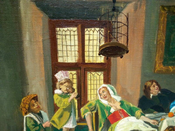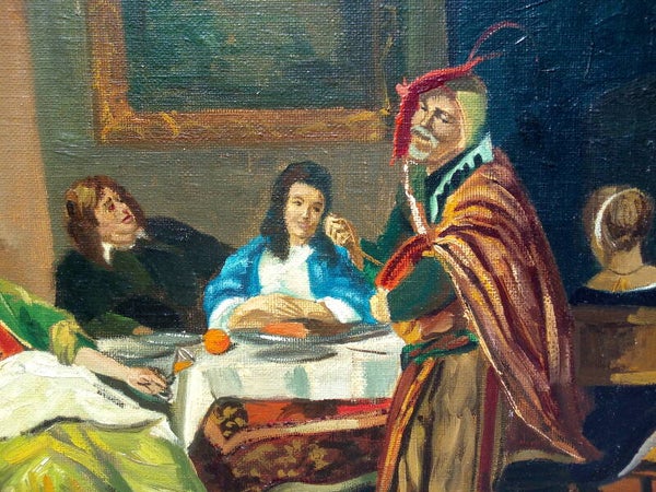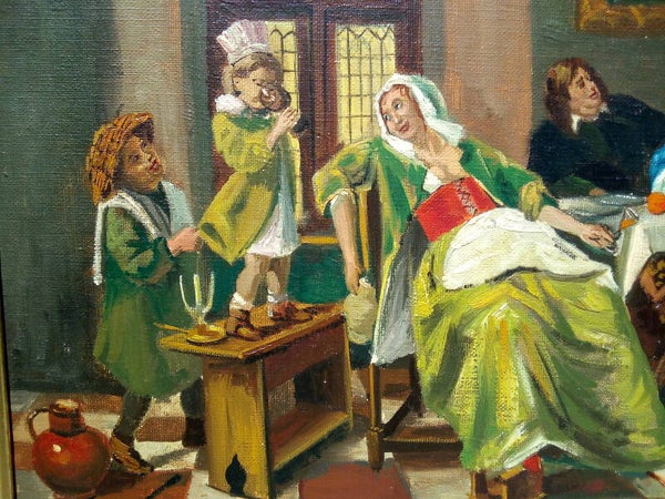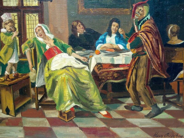 Peinture à l'huile sur toile signée Hans CRUYCKEN, peintre flamand, fin 20éme siècle, oeuvre d'art authentique représentant une "Scène de taverne" dans le goût du 17éme siècle.