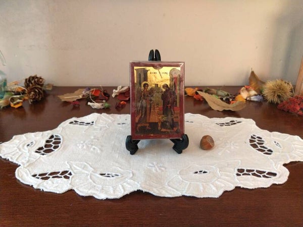 Authentique icône byzantine sur feuille d'or faite à la main (sujet non peint) sur panneau de particules compressé.
