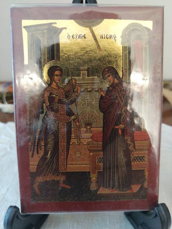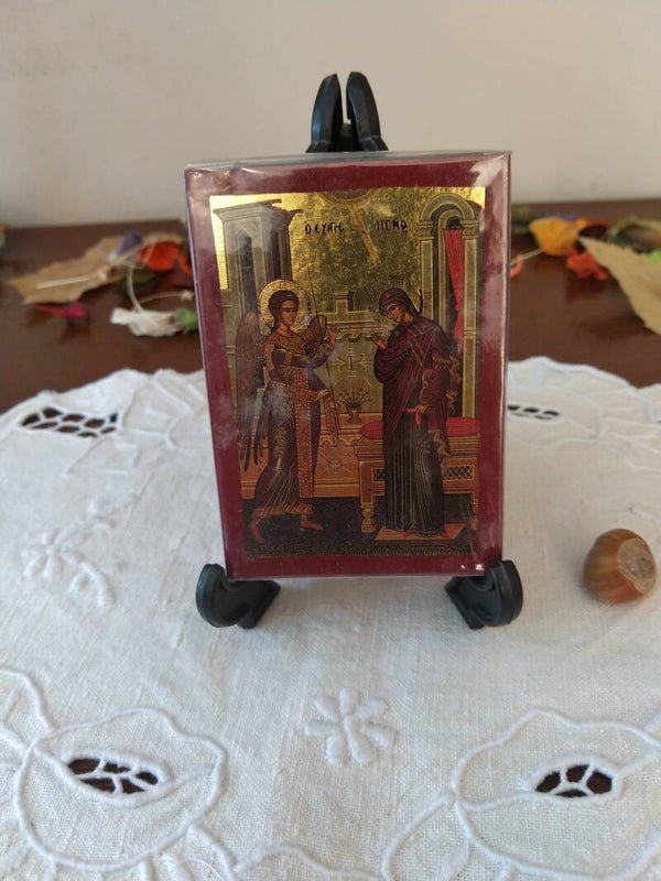 Véritable icône byzantine sur feuille d'or faite à la main, l'Annonciation