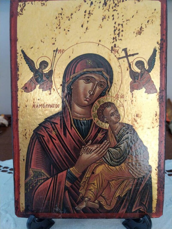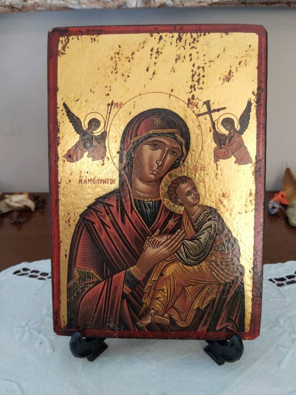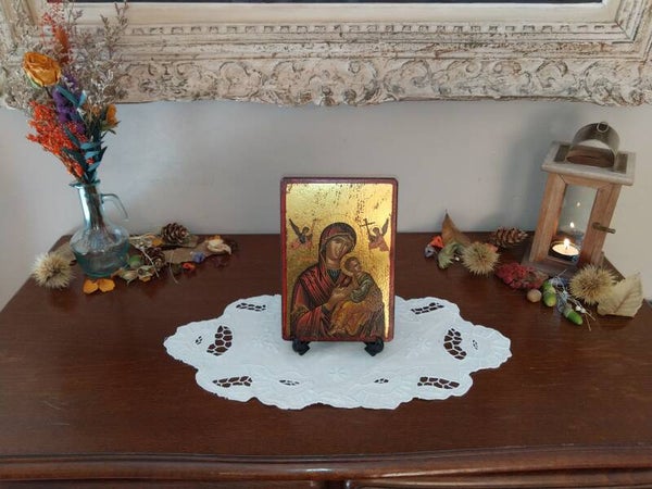 Véritable icône byzantine sur feuille d'or faite à la main, Sainte Vierge à l'Enfant