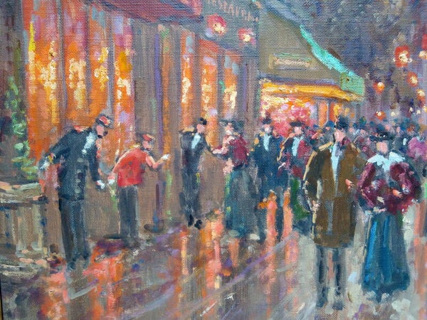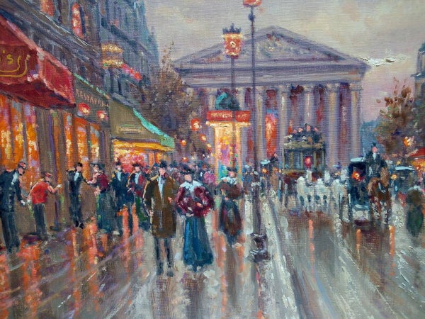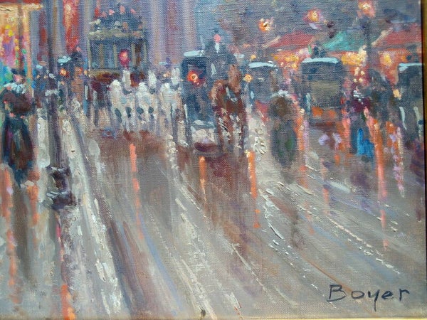 Un soir à la Madeleine est un bel hommage à Camille Pissarro et ses lumières embuées. La technique d’André Boyer réside dans le fini. Représenter la neige et les effets de pluies de cette façon, avec une telle brillance et nuancée par le passage des voitures et de la population est tout simplement magique! De par ses petites touches fines, André Boyer apporte de la brillance dans chacune de ses œuvres. Il maitrise aussi bien la ligne que la couleur ce qui en fait un artiste moderne recherché. (source Antikeo.com). Une oeuvre d'art authentique peinte à la main par un artiste français référencé.