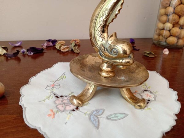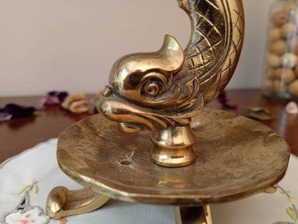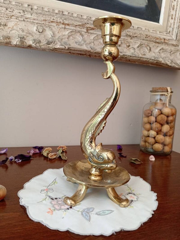 Très jolie paire de bougeoir en bronze doré en forme de dauphin, circa 1960, finement ciselés.