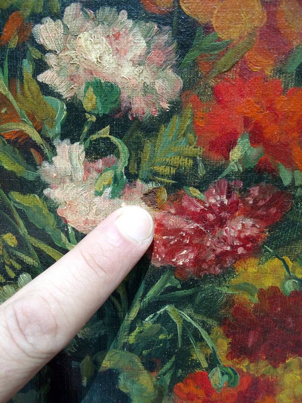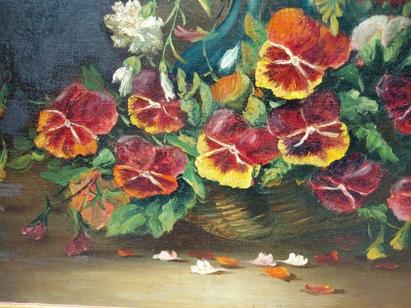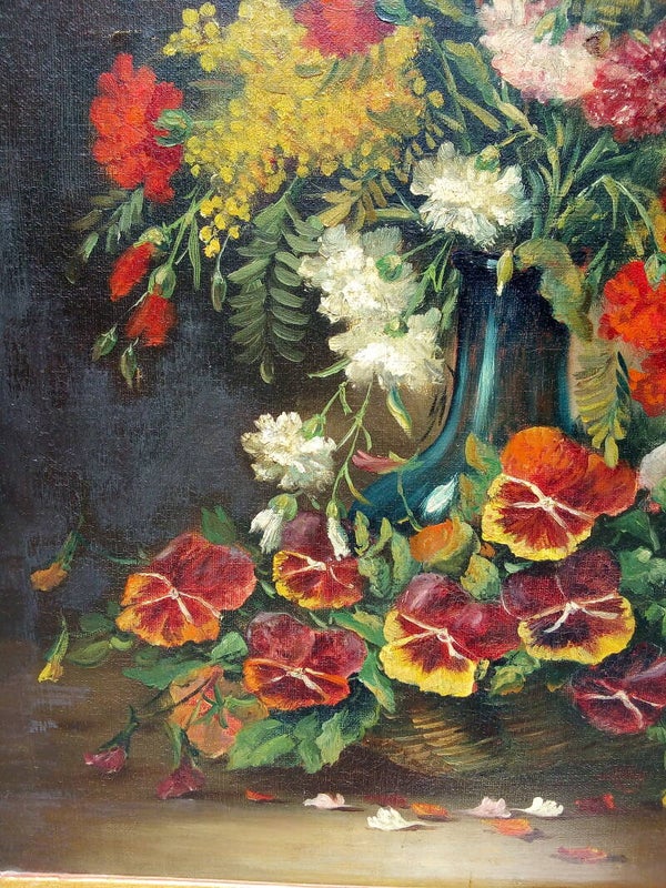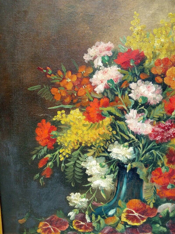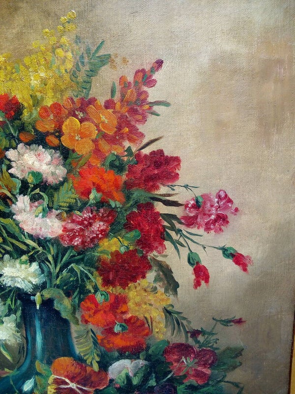 Peinture à huile sur toile, bouquet de fleurs, signée, 19ème siècle