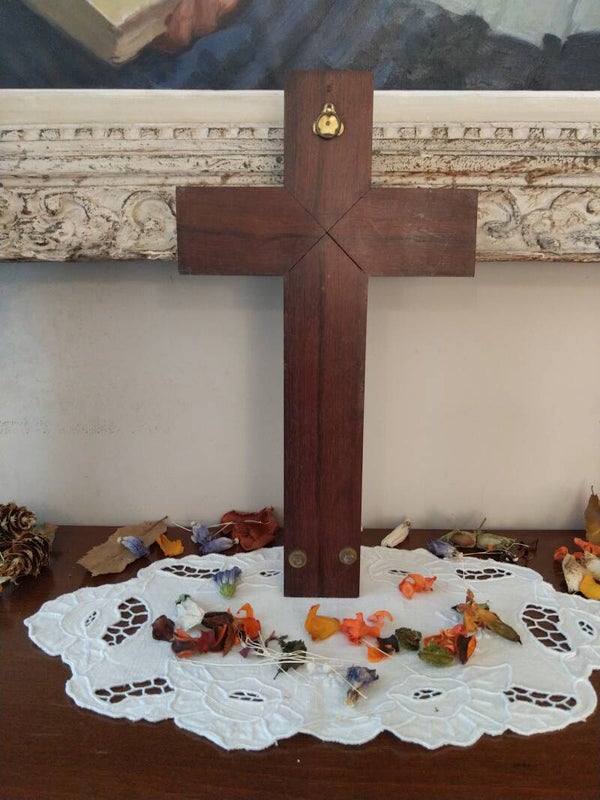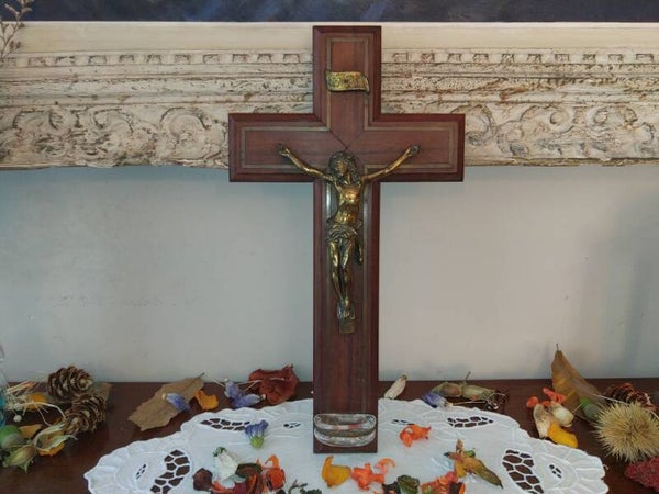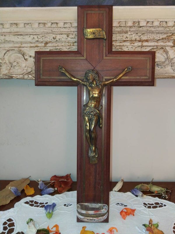 Grand crucifix ancien avec bénitier