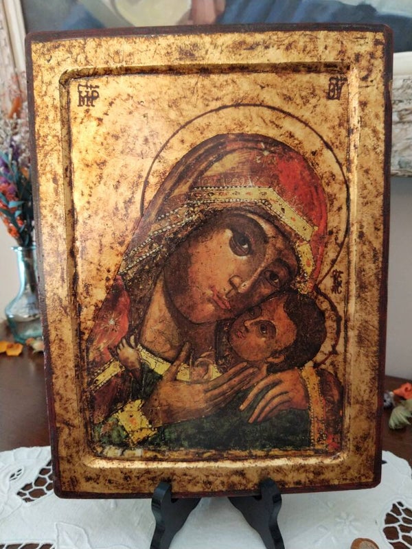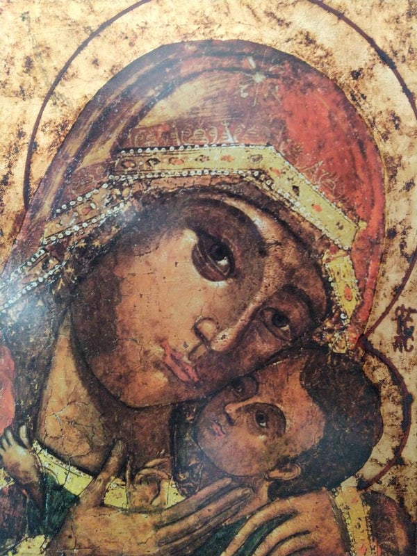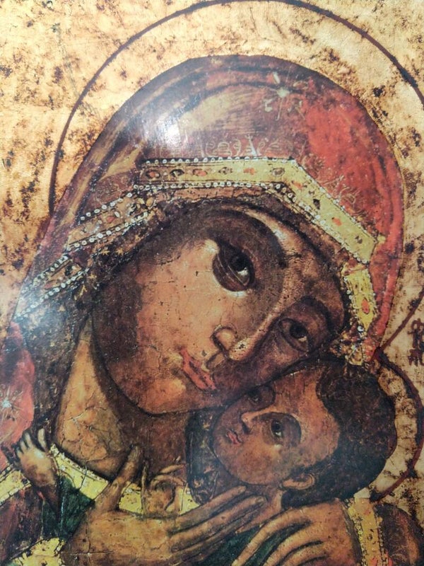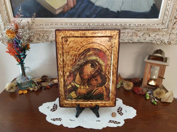 Exceptionnelle icône byzantine, Sainte Vierge à l'Enfant Jésus