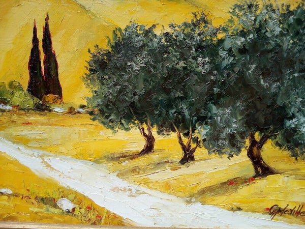 Peinture à l'huile sur toile, paysage provençal, signée CAPDEVILLE peintre Français