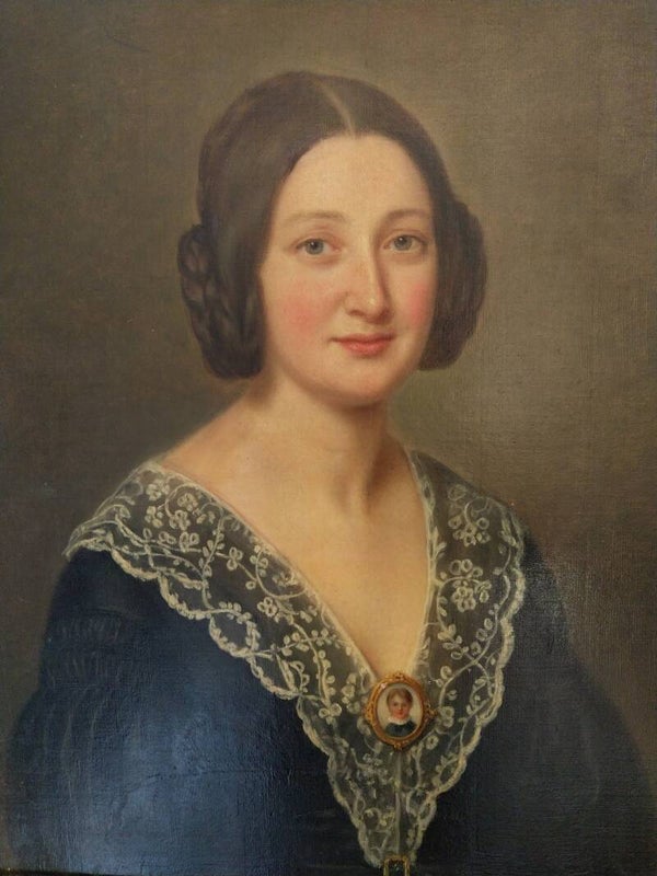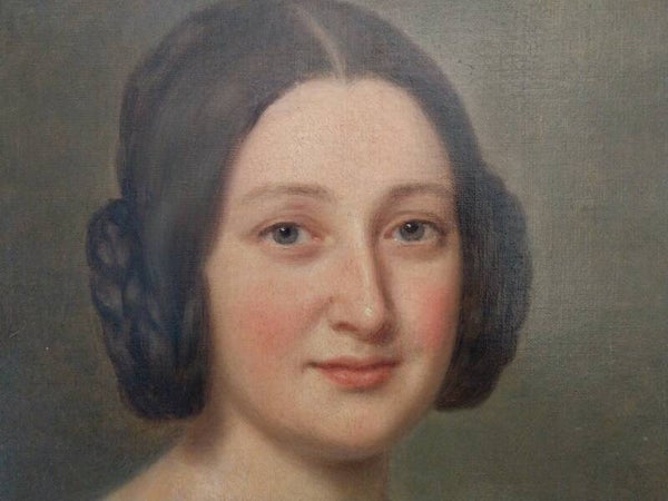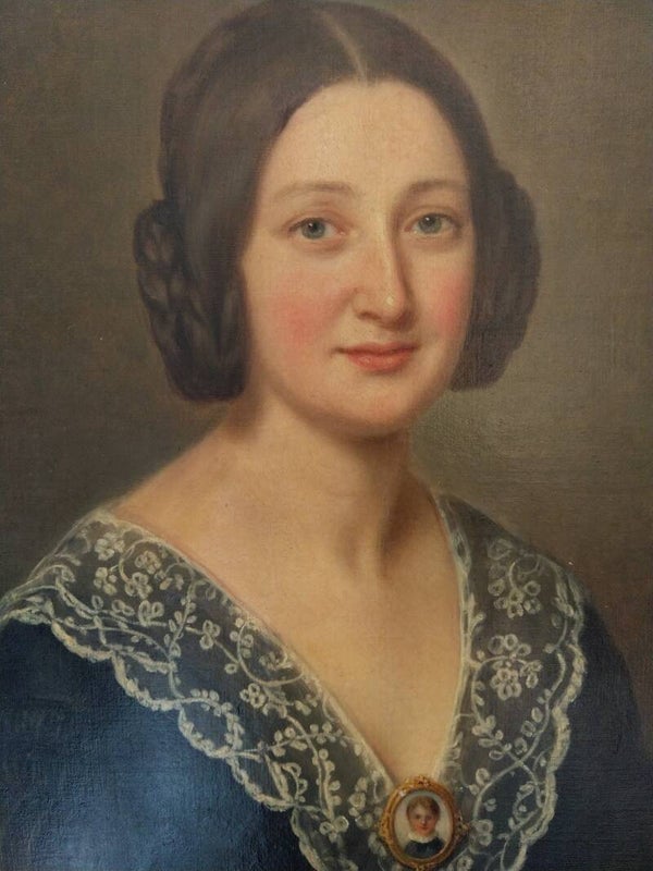 Peinture à l'huile sur toile signée A.Limal, datée (18)89, portrait de "Félicie Cousin"