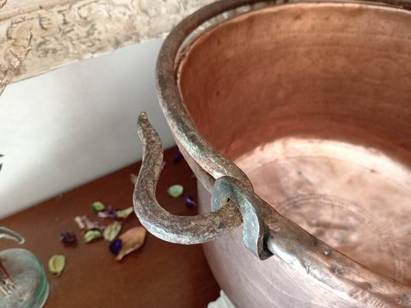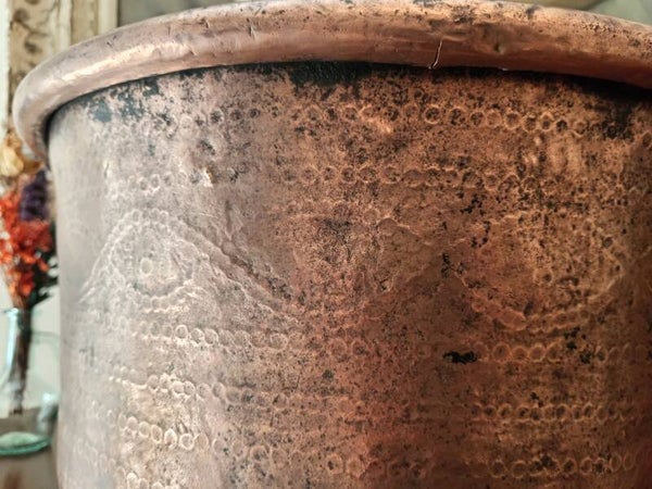 Grand chaudron cuivre ancien décor orientale, 5.2 kg